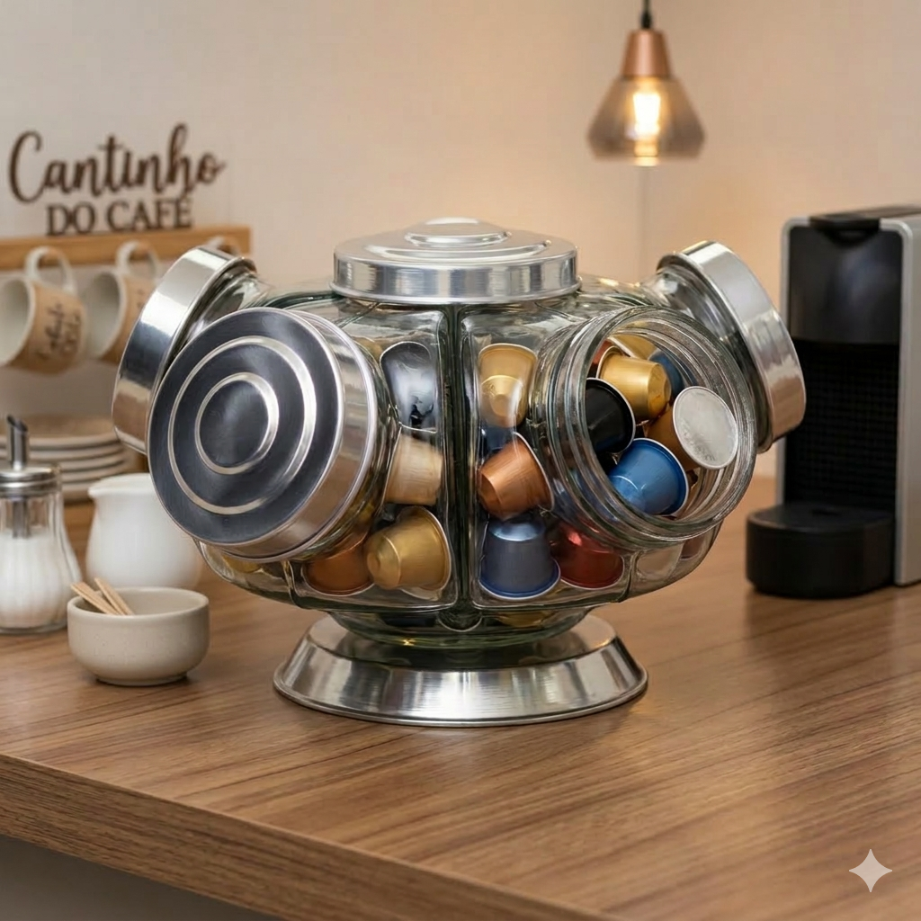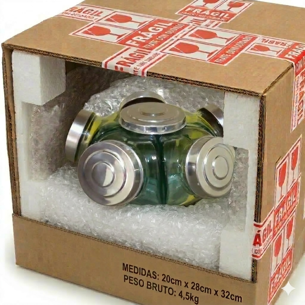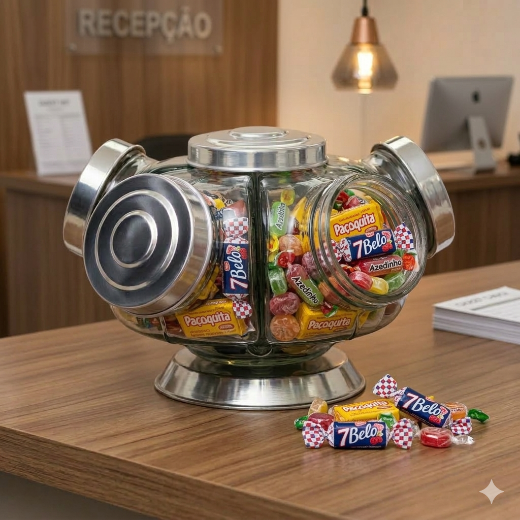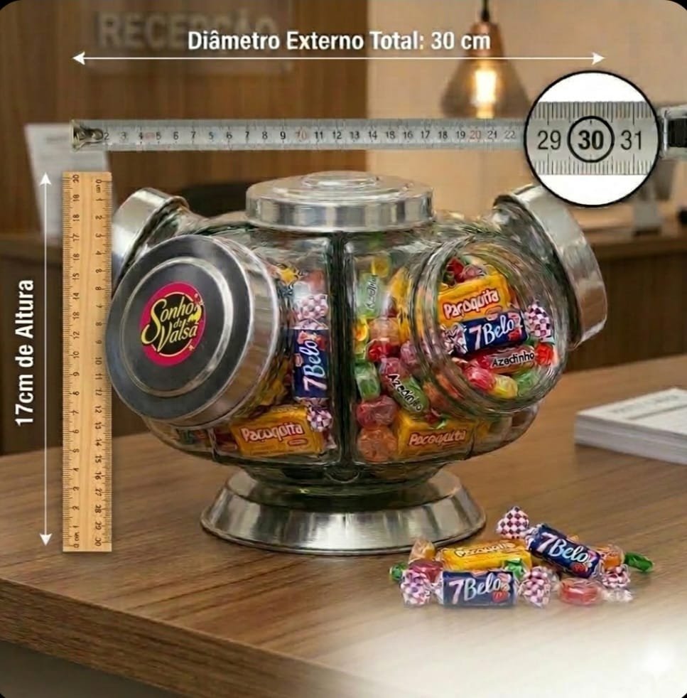 Baleiro de vidro giratório médio com 05 potes