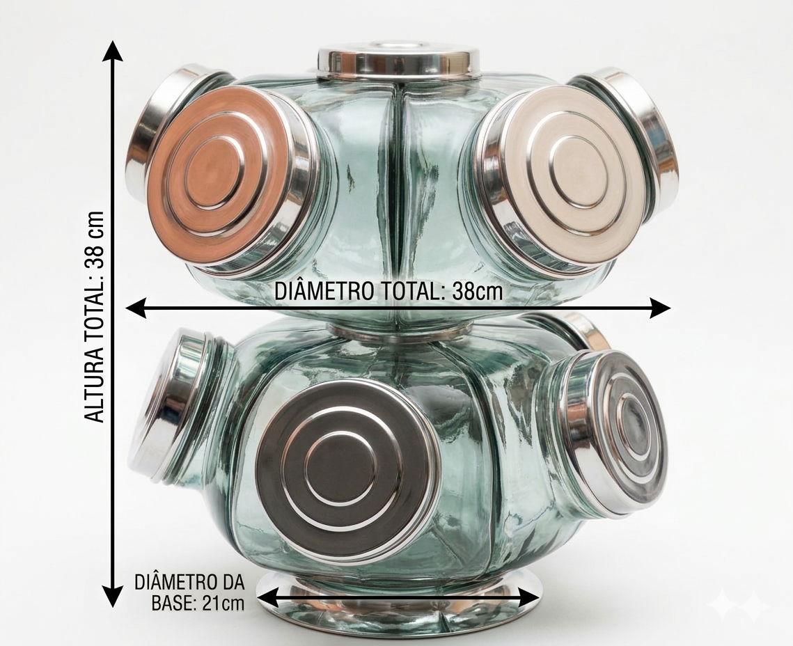 Com capacidade para até 7 kg, oferece ótimo espaço para organização e exposição, sendo perfeito para comércios, recepções, padarias, lojas de doces e até uso doméstico.