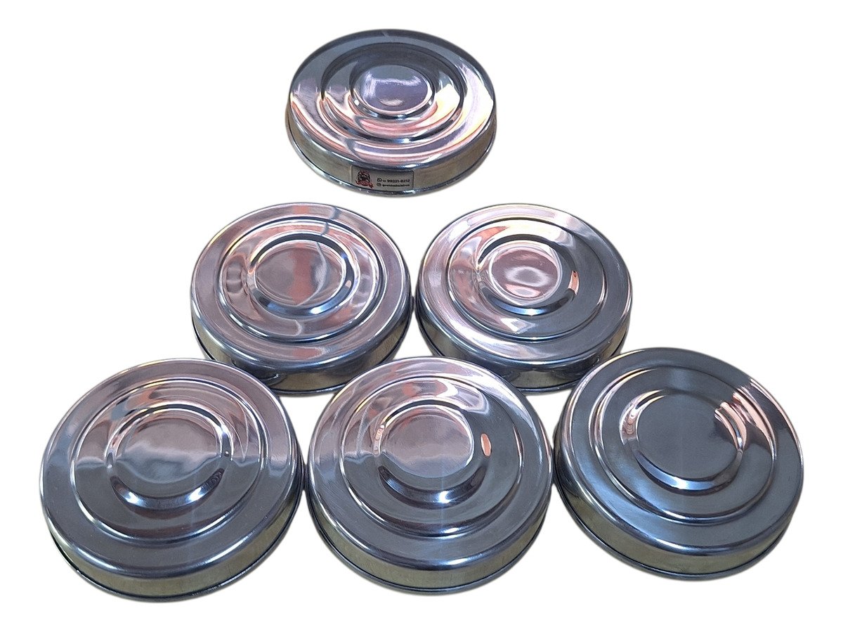 Fabricado em alumínio polido, o produto não só é durável, mas também fácil de limpar, mantendo sua aparência impecável por muito mais tempo. Com uma altura de apenas 2 cm, as tampas são práticas e ocupam pouco espaço no armazenamento. A embalagem adicional proporciona proteção extra, tornando o transporte e o armazenamento ainda mais seguros.